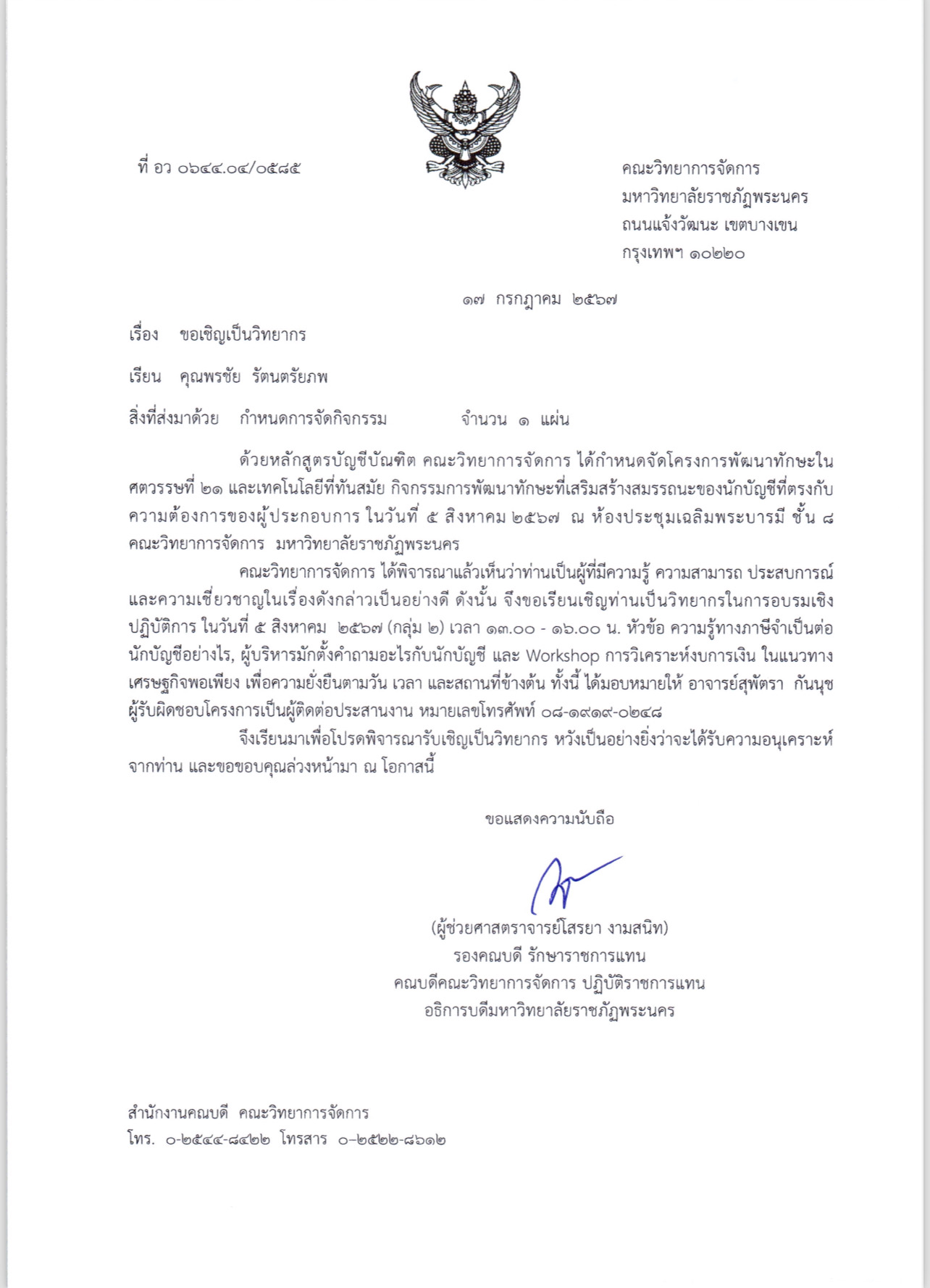 5 สิงหาคม 2567 คุณพรชัย รัตนตรัยภพ ได้รับเชิญจาก ผู้ช่วยศาตราจารย์สุพัตรา กันนุช อาจารย์ประจำภาควิชาบัญชีให้เป็นผู้บรรยายให้นักศึกษา คณะวิทยาการจัดการมหาวิทยาลัยราชภัฎพระนคร ประมาณ 100 คนโดยร่วมกับอาจารย์ทิวาวรรณ คำบุญทา ผู้สอบบัญชีรับอนุญาต (CPA) พูดคุยถ่ายทอดประสบการณ์ของผู้บริหารในการทำงานร่วมกับบัญชี, คุณสมบัติของนักบัญชีที่ผู้บริหารต้องการ, การเตรียมตัวสัมภาษณ์งานอย่างไรที่จะได้รับโอกาสเข้าทำงาน, โอกาสในการเป็นผู้ประกอบการของนักบัญชี, การปรับตัวของนักบัญชีเมื่อ AI เข้ามาอยู่ในชีวิตประจำวัน ฯลฯ โดยใช้การฝึกอบรมแบบปฏิบัติการ มีการเข้าร่วมกิจกรรมและตอบปัญหาได้เป็นอย่างดี ที่สำคัญได้ทดสอบถามคำถามที่ใช้ในการรับสมัครงานจริงของบริษัทอินเตอร์โปรไฟล์ ซึ่งส่วนใหญ่ผู้ที่มาสัมภาษณ์งานบัญชีที่อินเตอร์โปรไฟล์ มักจะตอบคำถามเหล่านี้ไม่ได้ แต่งานนี้ราชภัฏพระนครตอบคำถามได้ตั้งแต่คนแรก ที่นี่นักศึกษาเขายอดเยี่ยมจรืงๆ ตอบคำถามบัญชีที่ใช้สัมภาษณ์ที่อินเตอร์โปรไฟล์ได้ จบแล้วน้องจะเป็นที่ต้องการของตลาดแรงงานและได้งานดีดีทำหลังจบการศึกษาอย่างแน่นอน