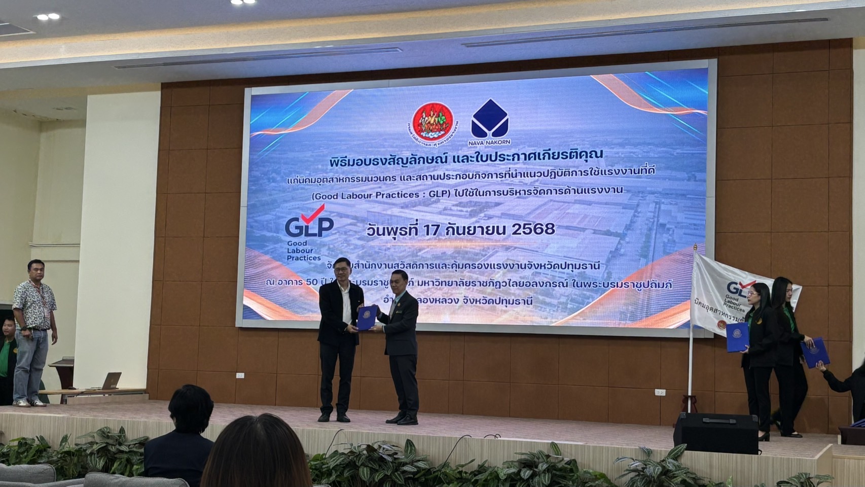 นายพรชัย รัตนตรัยภพ กรรมการผู้จัดการ บริษัทอินเตอร์โปรไฟล์ จำกัด เข้าร่วมในพิธีมอบธงสัญลักษณ์และใบประกาศเกียรติคุณ โดยนายศักดิ์ศิลป์ ตุลาธร รองอธิบดีกรมสวัสดิการและคุ้มครองแรงงาน ในโครงการ Good Labour Practices : GLP) ไปใช้ในการบริหารจัดการด้านแรงงานในเขตอุตสาหกรรมนวนคร ถือเป็นต้นแบบนิคมอุตสาหกรรมแห่งแรกที่เข้าร่วมโครงการ โดยมีนายสมควร จันทร์แดง ประธานสภาอุตสาหกรรมจังหวัดปทุมธานี เข้าร่วมแสดงความยินดี