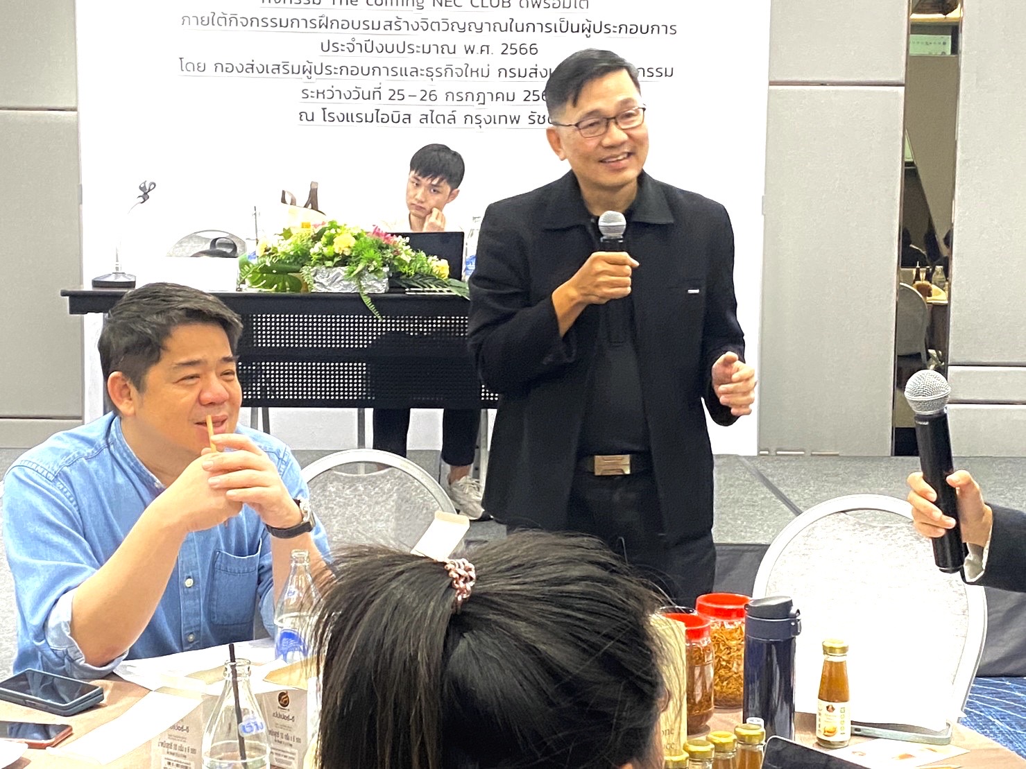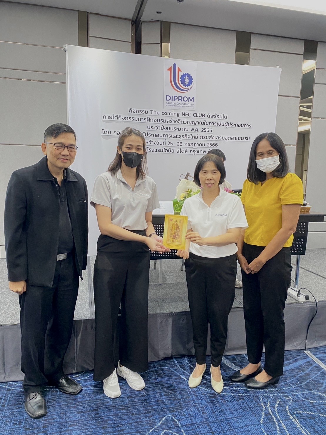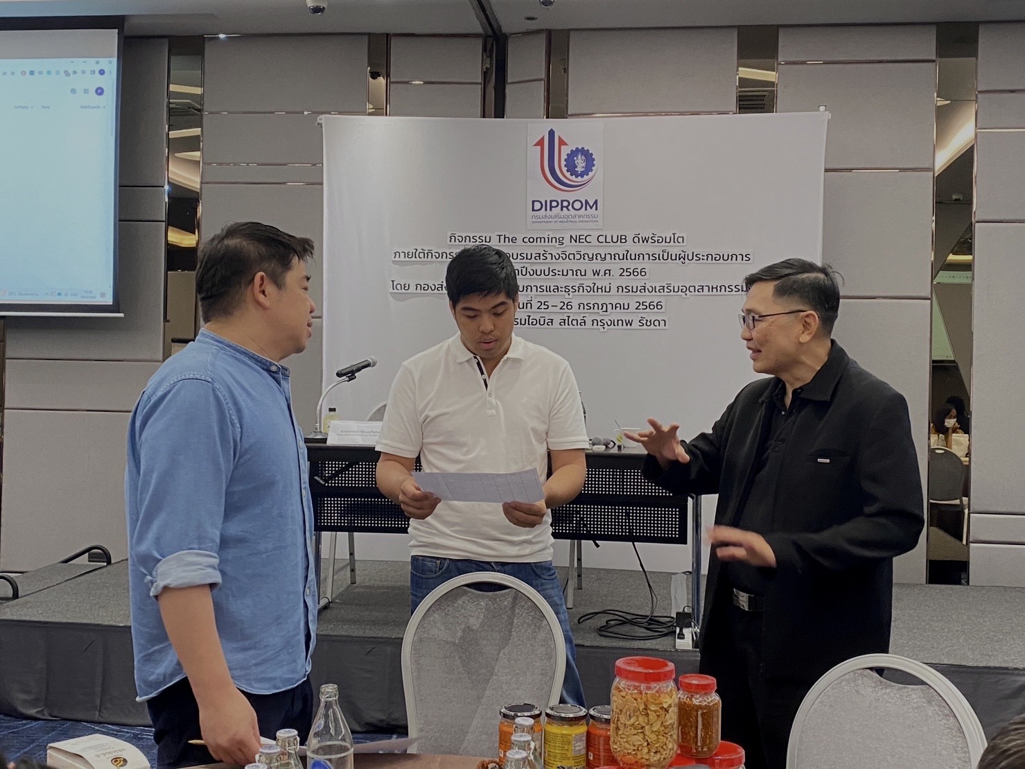 วันที่ 25-26 กรกฎาคม 2566 นายพรชัย รัตนตรัยภพ กรรมการผู้จัดการ บริษัท อินเตอร์โปรไฟล์ จำกัด ในฐานะประธานกรรมการเครือข่าย DIPROM SMEs Network ได้รับเชิญจากกองส่งเสริมผู้ประกอบการและธุรกิจใหม่ เป็นผู้บรรยายในกิจกรรม “The Coming NEC Club ดีพร้อมโต” ภายใต้โครงการสร้างจิตวิญญาณในการเป็นผู้ประกอบการ มีผู้ประกอบการที่เข้าร่วมโครงการ 30 กิจการ จัดที่โรงแรม ไอบิสสไตล์ รัชดา กรุงเทพฯ โดยมีนายปุรภัทร รัตนตรัยภพ เป็นผู้ร่วมดำเนินกิจกรรม ในงานมีนายวรวิทย์ จิรัฐิติเจริญ ผู้อำนวยการกองส่งเสริมผู้ประกอบการและธุรกิจใหม่ เป็นผู้เปิดการฝึกอบรม